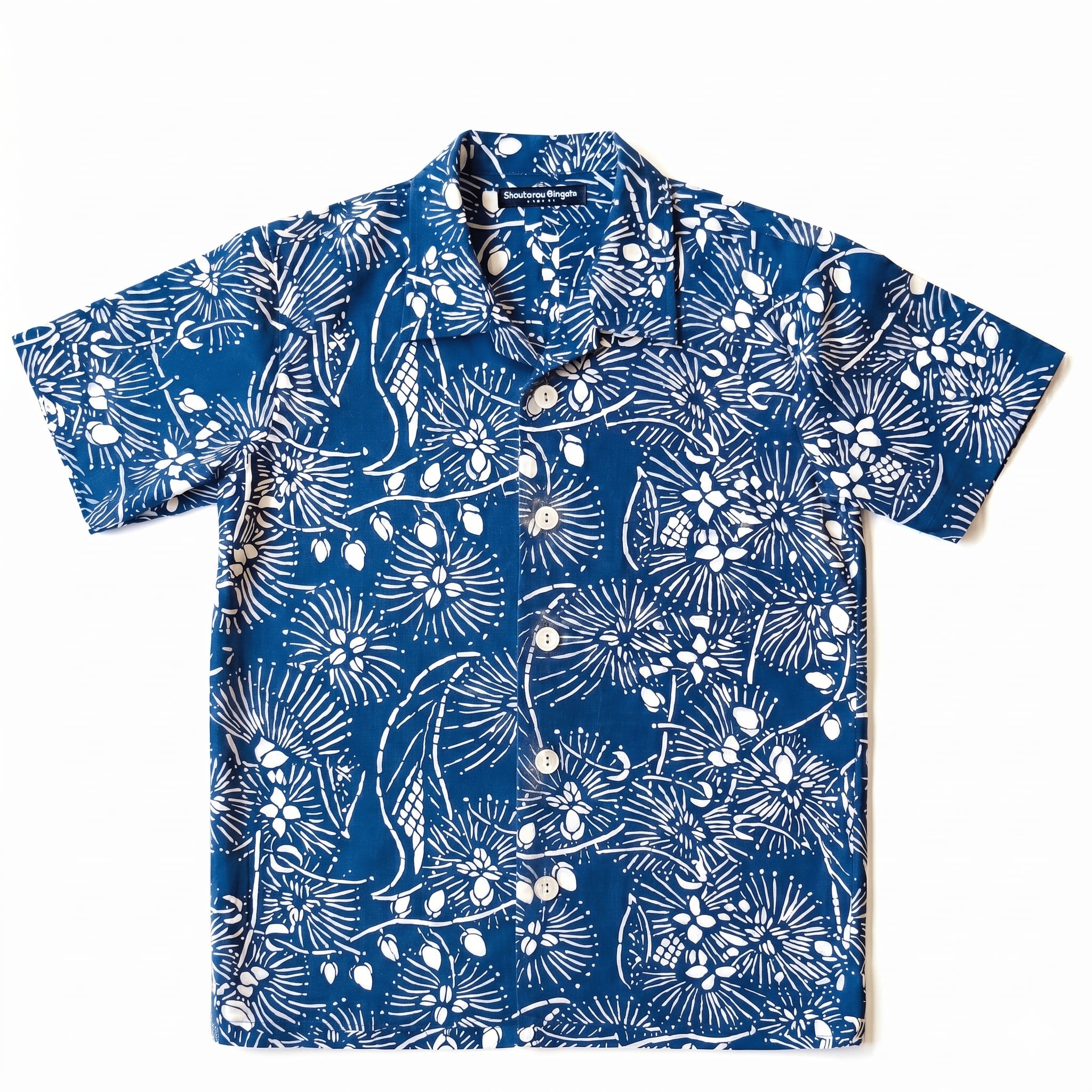 【近日販売予定 / 数量限定・藍色】琉球紅型の型紙から生まれたアロハシャツ